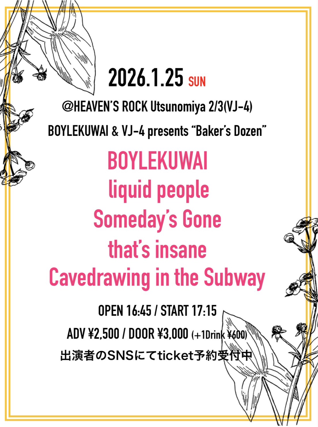 ADV ¥2,500 / DOOR ¥3,000 (+1Drink ¥600)